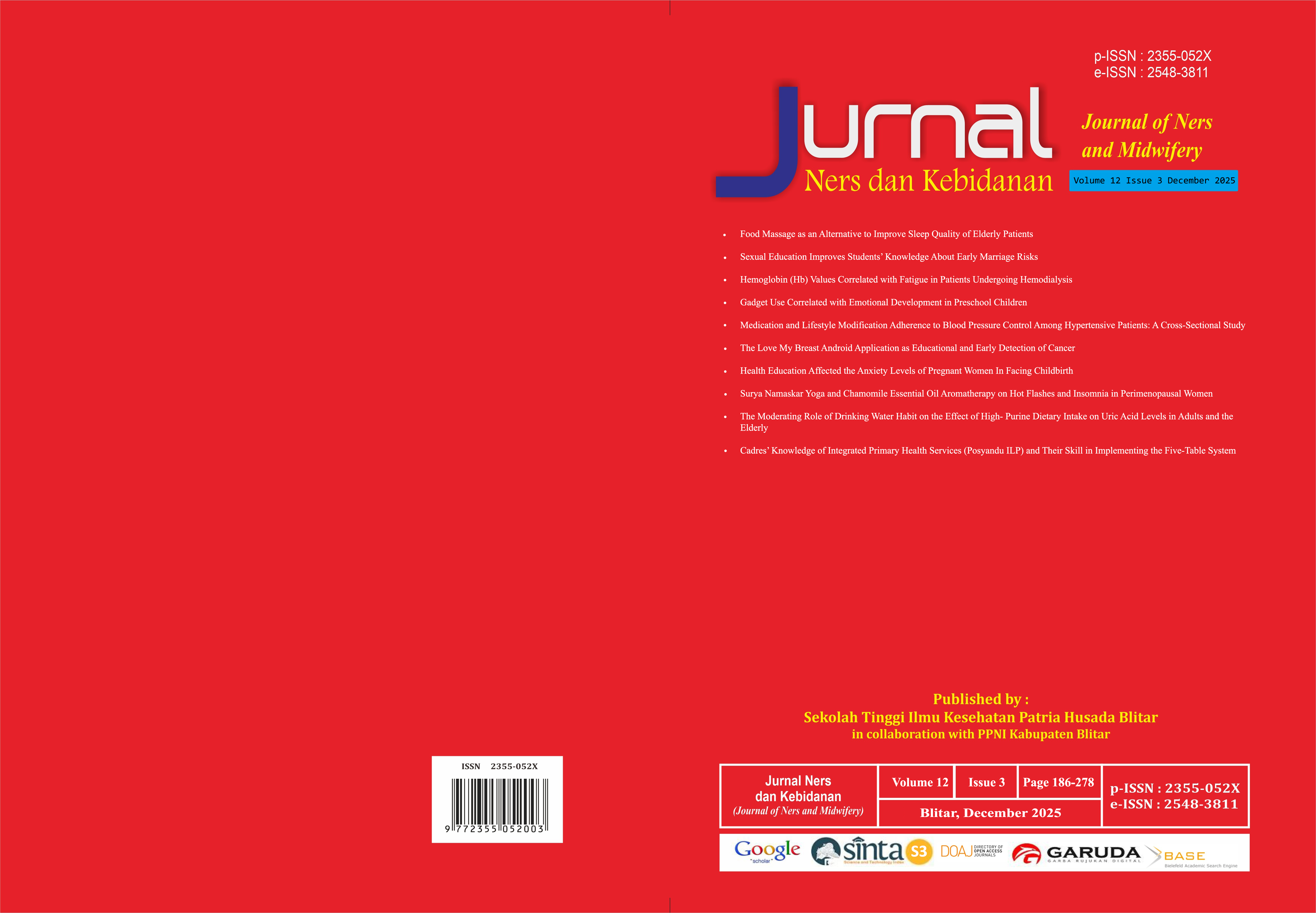 Read more about Quality Upgrade: Adjusted Publication FrequencyJurnal Ners dan Kebidanan (Journal of Ners and Midwifery) published by STIKes Patria Husada Blitar. Published three times in a year, its in April, August and December. Jurnal Ners dan Kebidanan (Journal of Ners and Midwifery) only receive original manuscripts related to science development and have not been published in domestic and foreign journals. The content of the manuscripts can be in the form of research results to support the progress of science, education and nursing practice and professional midwifery.